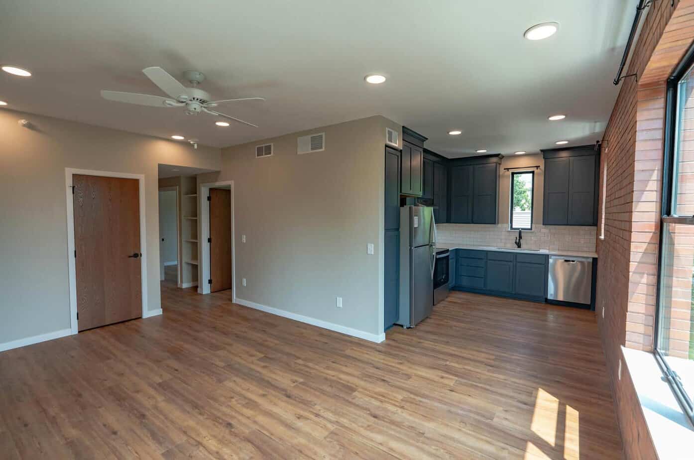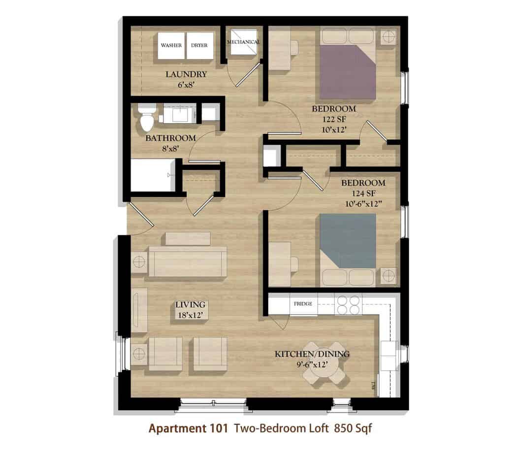 LOCATED across the street from the east side of Campus, this brand new spacious contemporary Two-Bedroom Loft accommodates an open kitchen/living room layout with large windows, plenty of natural light and exposed brick walls that give this apartment a contemporary ‘urban’ lofty texture.