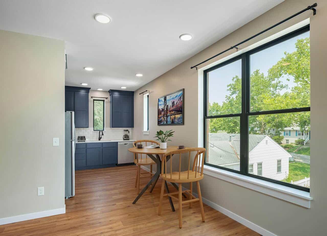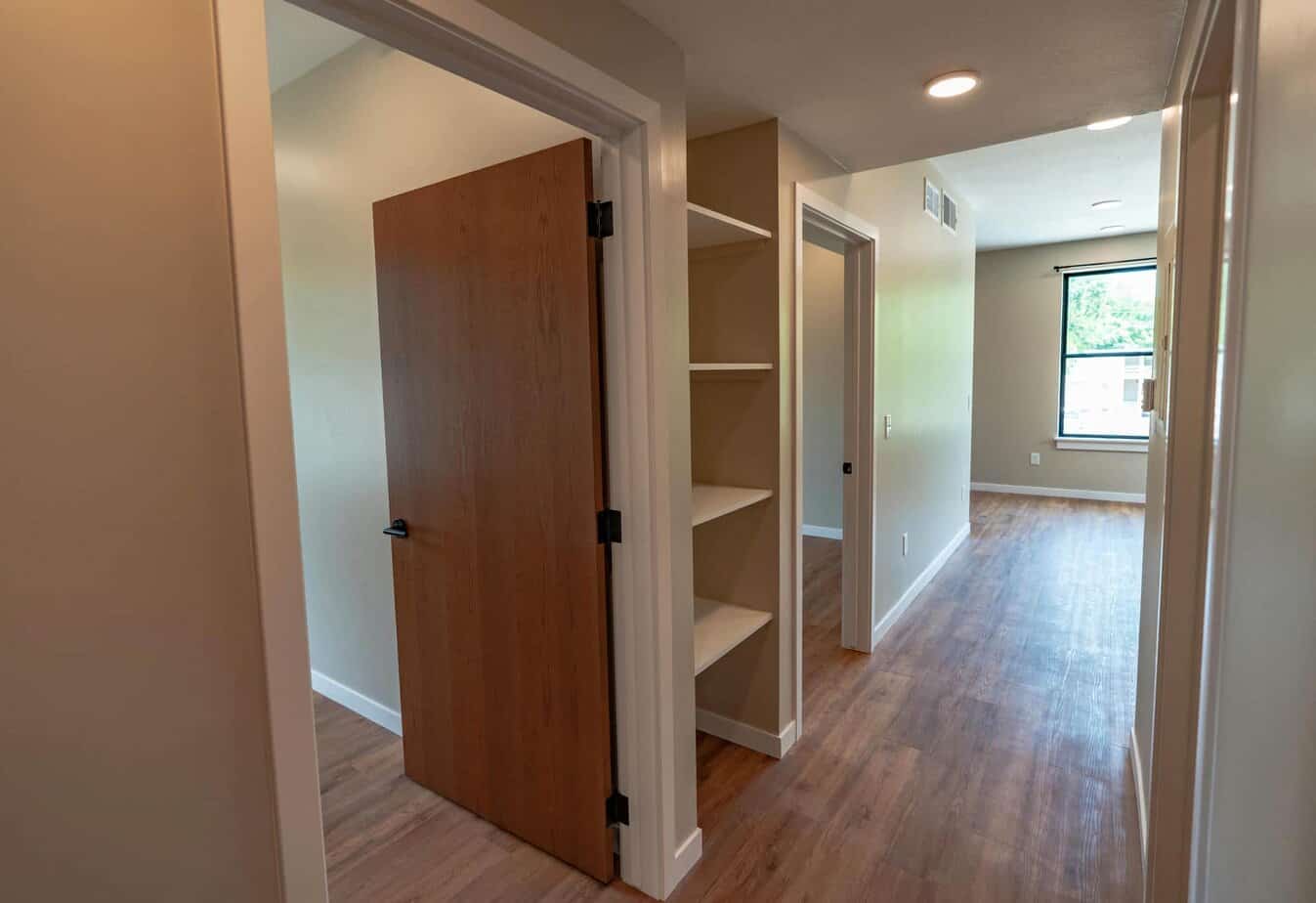 Bedrooms have sizable built-in closets and are large enough for a king-sized bed and full dresser. The open kitchen embraces functionality with stainless-steel appliances and generous modern cabinetry that cater to any culinary need. A laundry room with modern washing/drying appliances also offers plenty of extra storage. With KSU across the street and only a short walking distance to MCC and Aggieville, Apartment 1220 offers plenty on/off-street parking.