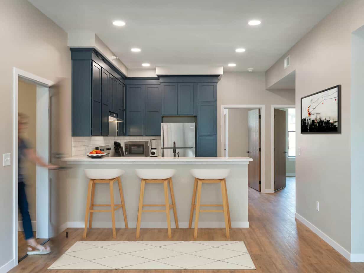 Bedrooms have sizable built-in closets and are large enough for a king-sized bed and full dresser. The open kitchen embraces functionality with stainless-steel appliances, generous modern cabinetry and a built-in bar that cater to any culinary need. A laundry room with modern washing/drying appliances also offers plenty of extra storage. With KSU across the street and only a short walking distance to MCC and Aggieville, Apartment 1220 offers on/off-street parking.