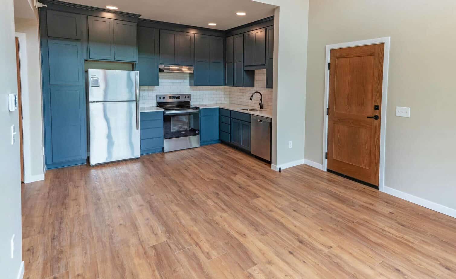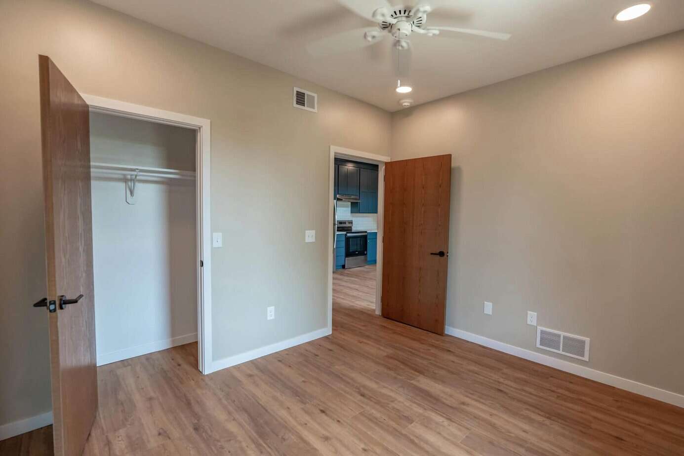 The bedroom is roomy enough for a king-sized bed and full dresser with a sizable built-in closet. The open kitchen embraces functionality with stainless-steel appliances and generous modern cabinetry that cater to any culinary need. A stacked washer and dryer are tucked comfortably into a large bathroom closet with plenty of storage. With KSU across the street and only a short walking distance to MCC and Aggieville, Apartment 1220 offers on/off-street parking.