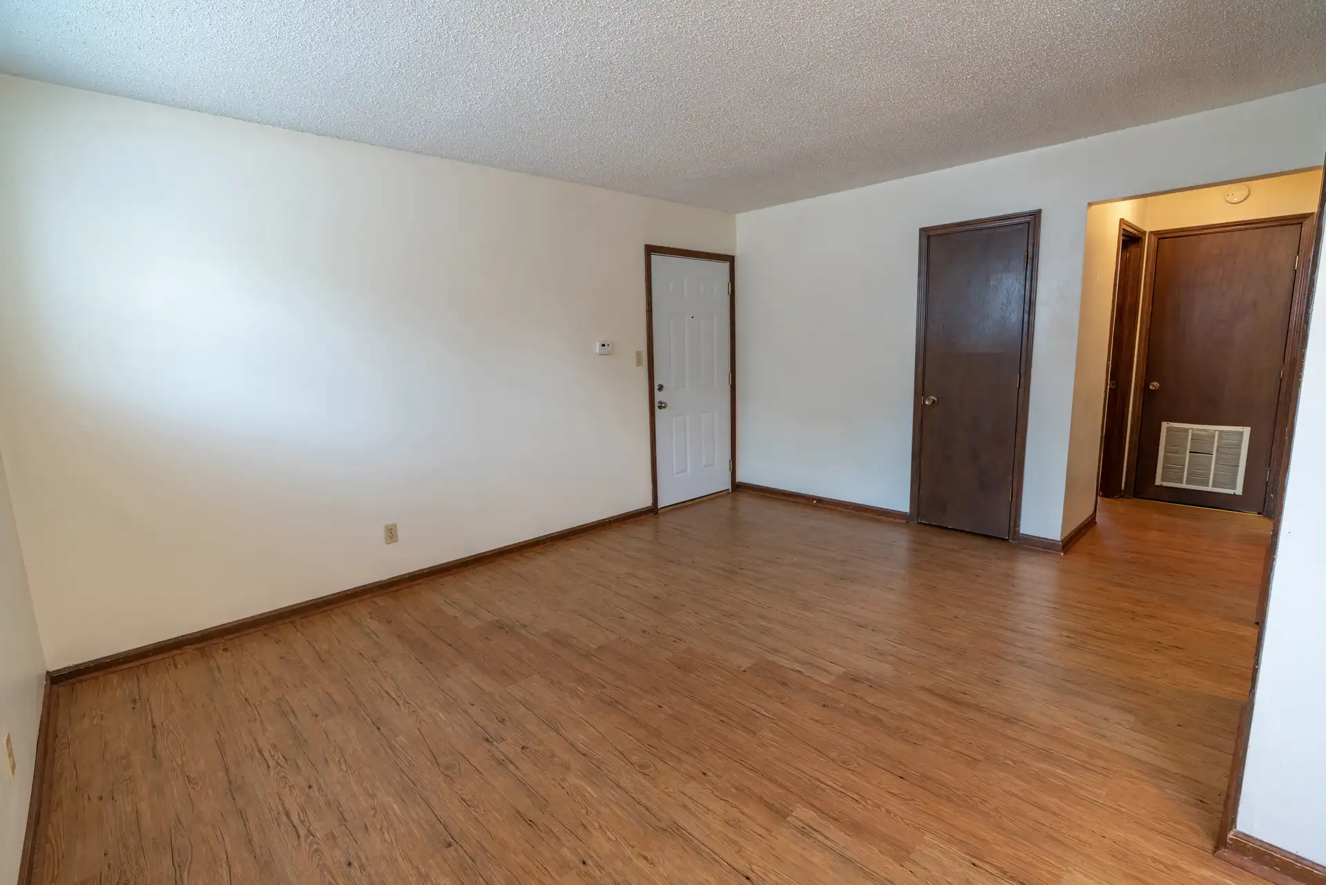 Large one bedroom. Bedroom is large enough for a King-sized bed and full dresser. This apartment has a dining area, off-street parking, and laundry in the unit. The laundry room is big enough for storage or an office. Walking distance to KSU, MCC, and Aggieville. Each tenant has one reserved parking stall.